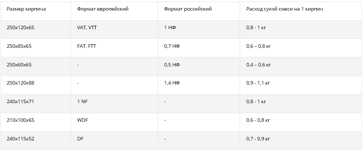 | Для кирпича с водопоглощением, % | 5 -17 |